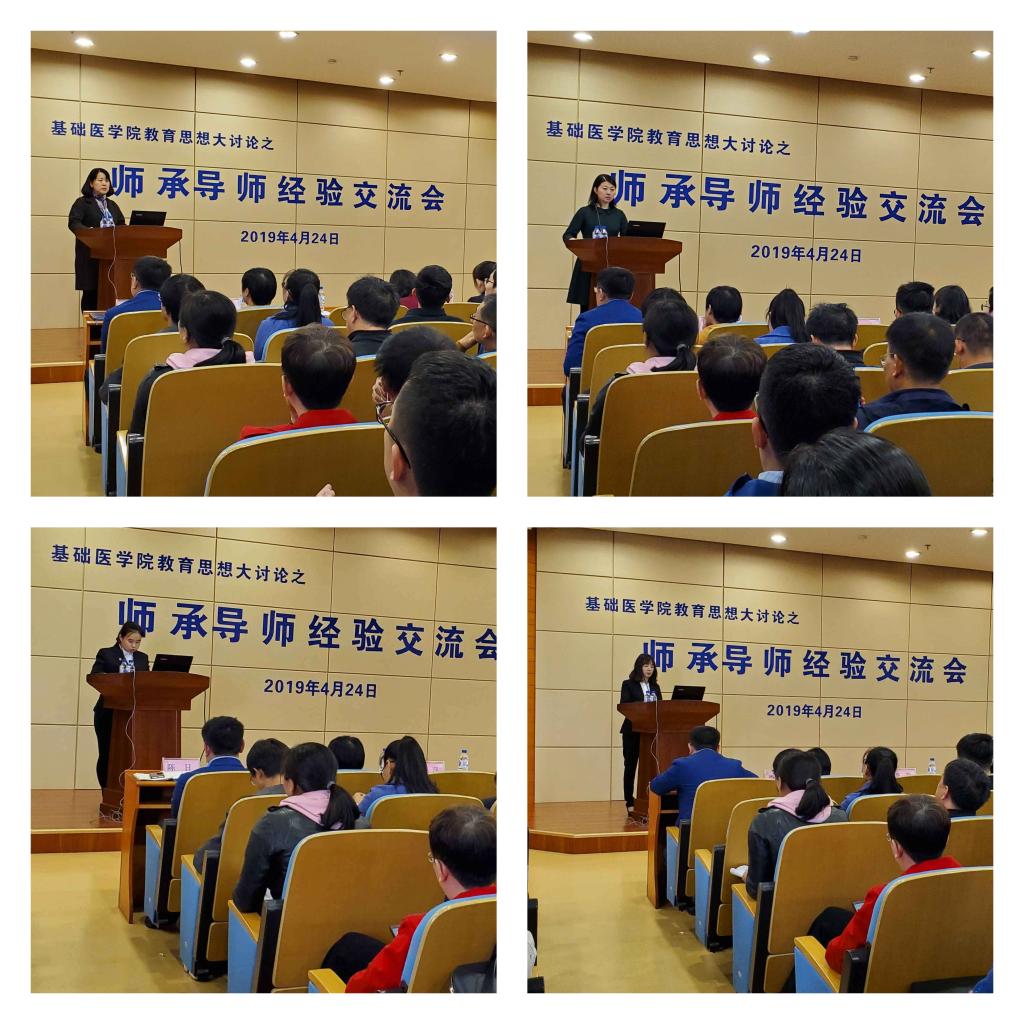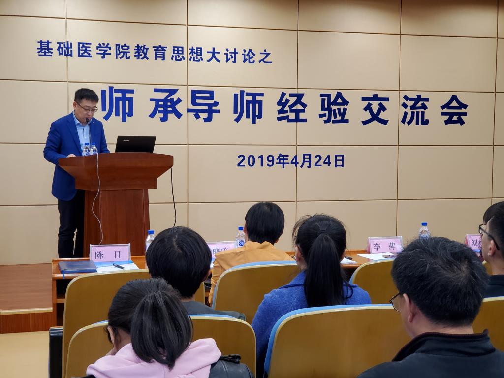 4月24日,澳门网投官方网站在菊韵报告厅召开教育思想大讨论系列活动之师承导师经验交流会。校长宋柏林,教务处副处长刘杰,澳门网投官方网站领导班子,各教研室主任,全院教师及部分师承学生参加会议,党委书记陈日主持会议。