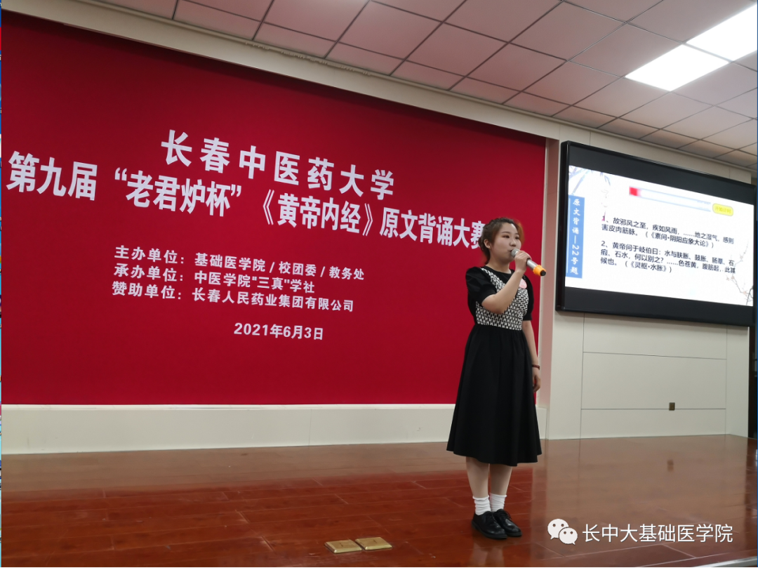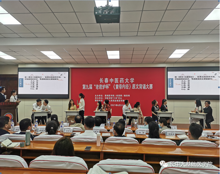 6月3日,澳门网投官方网站第九届“老君炉杯”《黄帝内经》原文背诵大赛决赛经过三个月的积极筹备在致知楼莲心报告厅举行。本次大赛由澳门网投官方网站、校团委、教务处、中医学院主办,中医学院“三真”学社承办,长春人民药业集团有限公司赞助了本届大赛。校党委副书记姜彤伟,全国教学名师、国家一流课程负责人苏颖,校团委书记孙佳明,校团委副书记黄海鹏,澳门网投官方网站副院长李萍,中医学院党委副书记兼副院长阚俊明,针灸推拿学院党委副书记李健睿,长春人民药业集团董事长许家顺,集团副总裁宋政来,人力资源总监刘丽波出席了本次大赛。大赛评委及仲裁由内经教研室老师担任。