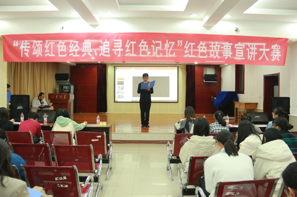 本站讯为推动“青春心向党,建功新时代”学生党员教育的深入落实,进一步弘扬红色革命精神、汲取信仰力量,11月21日下午,beat365中国唯一官网于文泰苑518室举办“传颂红色经典,追寻红色记忆”红色故事宣讲大赛。学院团委书记孙磊、本科生党支部书记王祎璠及6名正式党员担任评委,2017、2018级党员及入党积极分子观看了比赛。