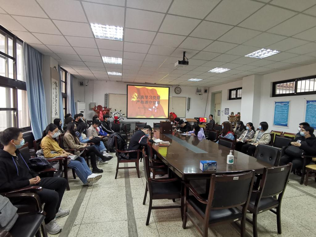 本站讯 为开展好党史学习教育,3月26日下午,beat365中国唯一官网本科生第二党支部于图东环楼208室召开会议,组织开展主题党日活动。本次活动以“认真学习党章,严格遵守党章”为主题,党支部书记孙磊主持此次活动。