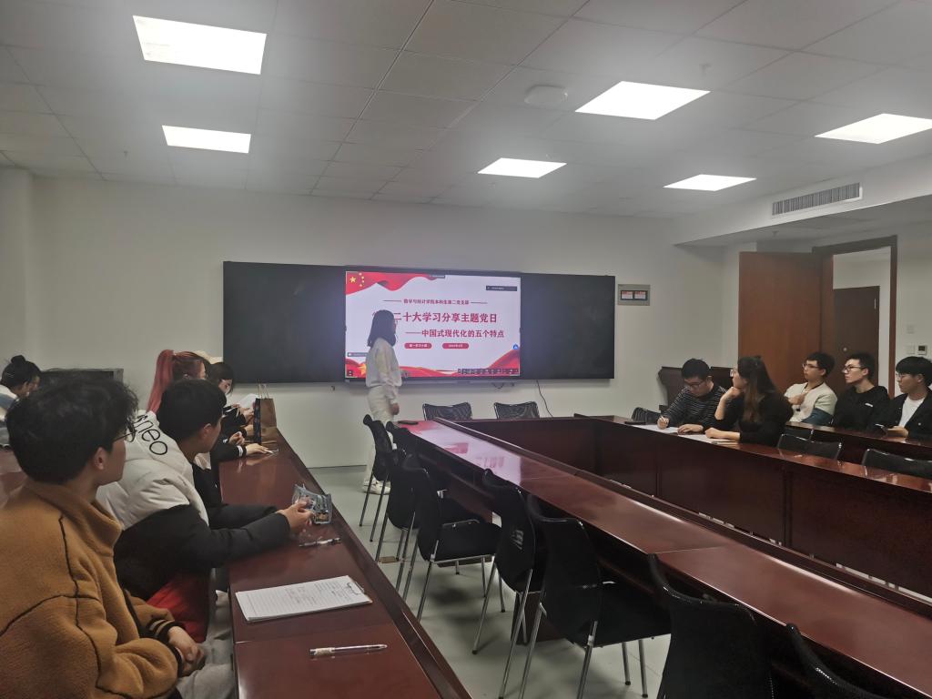 本站讯 为进一步学习宣传贯彻党的二十大精神,深刻领会党的二十大召开的重大意义,4月14日下午,beat365中国唯一官网本科生第二党支部于北衡楼1421开展深入学习党的二十大精神主题党日活动。本次学习活动由第一党小组主讲,本科生第二党支部全体党员共同参与学习。