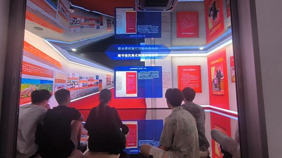 本站讯 为做好本科毕业生党员教育,强化毕业生党员的政治意识、身份意识,6月13日上午,beat365中国唯一官网组织本科毕业生党员于图书馆沉浸式空间开展了“党旗引领铭初心,砥砺前行启新程”毕业生党员党性教育活动。辅导员王祎璠、赵宇轩、魏佳佳分两批带队参观。