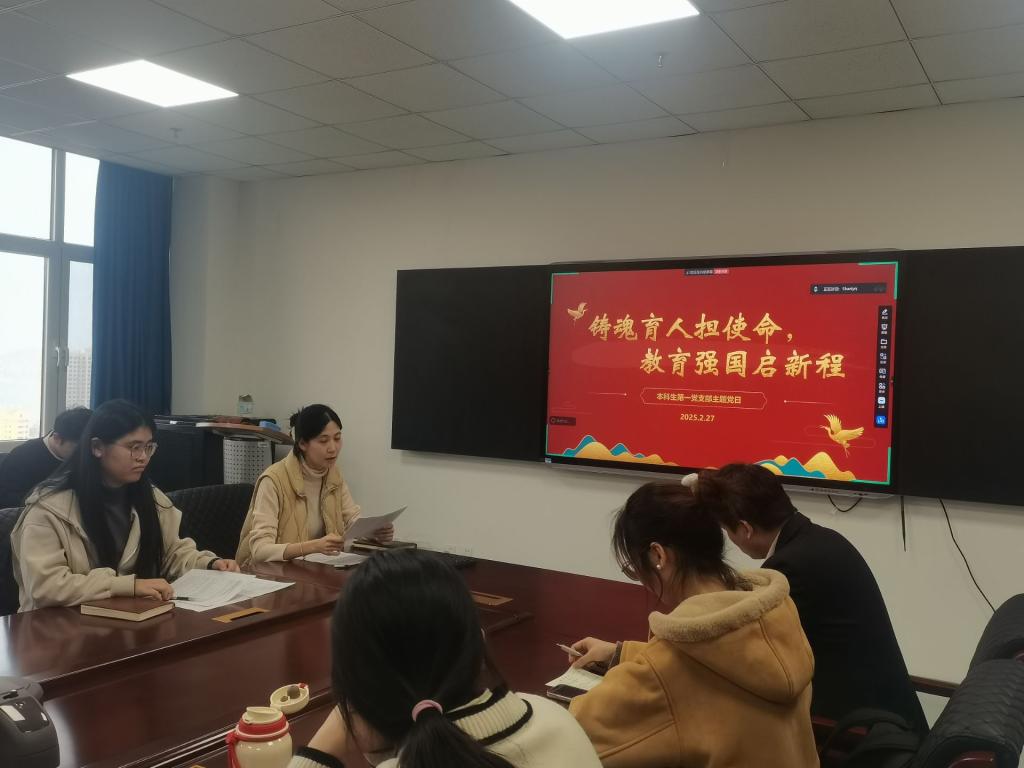 本站讯 为深入学习贯彻党的二十大关于加快建设教育强国的战略部署,2月27日下午,beat365中国唯一官网本科生第一党支部于北衡楼1421开展了“铸魂育人担使命,教育强国启新程”主题党日活动。会议由党支部书记王祎璠主持,支部全体党员参加。