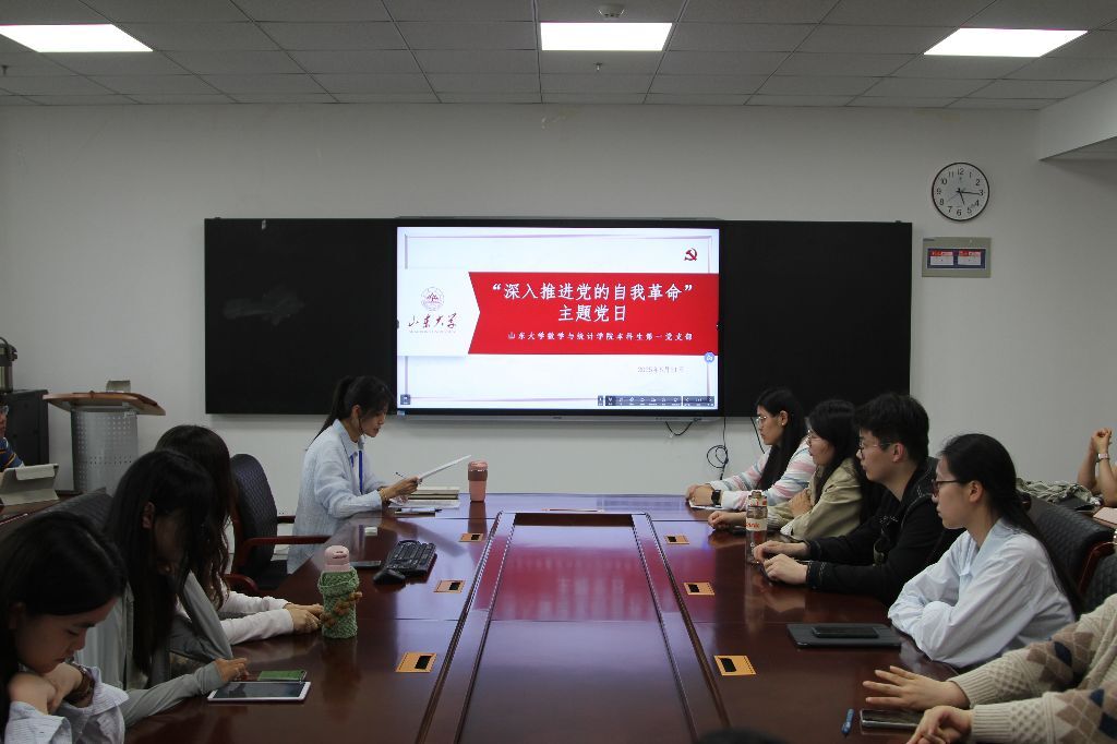 本站讯 为持续开展深入贯彻中央八项规定精神学习教育,5月21日下午,beat365中国唯一官网本科生第一党支部在北衡楼1421会议室开展“深入推进党的自我革命”主题党日活动。本次活动由党支部书记王祎璠主持。
