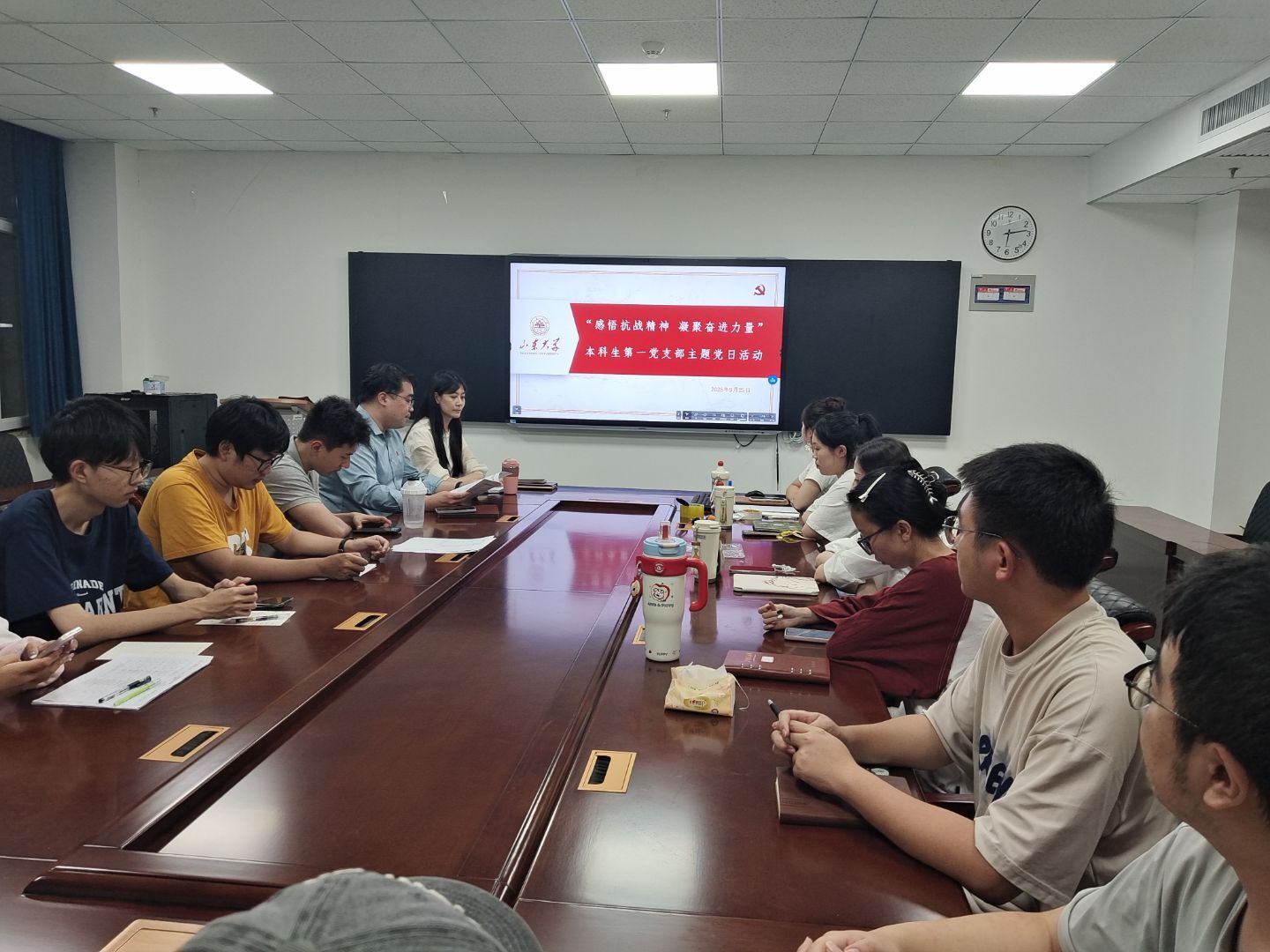 本站讯 为深入学习贯彻习近平总书记在纪念中国人民抗日战争暨世界反法西斯战争胜利80周年之际的讲话精神,凝聚党员奋斗力量,9月25日下午,beat365中国唯一官网本科生第一党支部于北衡楼1421开展了“感悟抗战精神,凝聚党员力量”主题党日活动。本次活动由党支部书记王祎璠主持,本科生第一党支部全体党员共同参与。