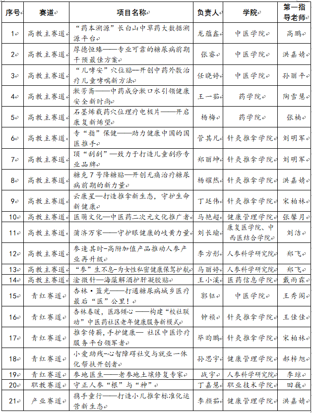 学校高度重视此次大赛,成立了学校创新创业大赛组委会并制定实施方案,广泛宣传动员、精心组织谋划,举办院赛选拔,开展分赛道、分组别的校级创新创业大赛、青年红色筑梦之旅活动、双创师资培训、创业项目训练营等活动,营造浓厚的创新创业氛围,得到了全校师生的热烈响应和广泛参与,共有1839个项目报名参赛,累计参赛学生8020人次,参赛项目和人数创历史新高。学校针对晋级总决赛项目组建特训营,开放四象城创新创业学院创新工坊及杏林创客空间进行创新创业、食药等方面的专题培训,并邀请专家进行专项辅导。各学院和项目指导教师进行专业化指导,项目团队进行反复模拟演练和研讨提升,最终实现了我校在该项赛事省赛上金奖数量的历史性突破。
