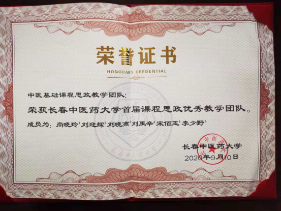 中医基础课程思政教学团队获澳门网投官方网站首届课程思政优秀教学团队