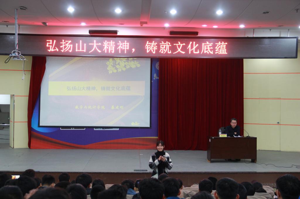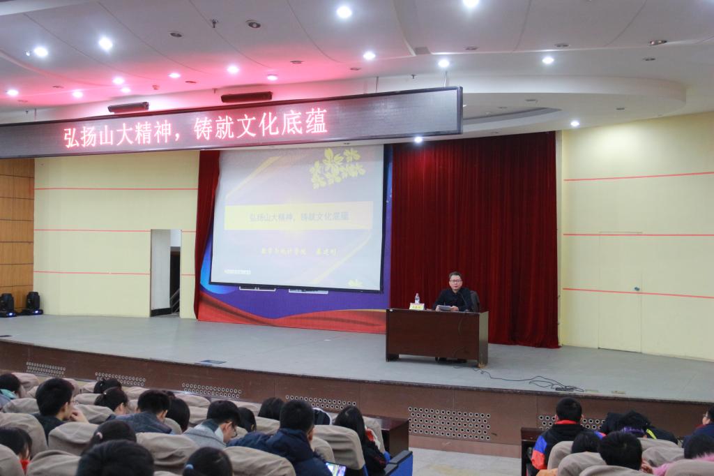 本站讯为增强新生对学校的文化认同,进一步继承和弘扬山大精神,11月20日下午,beat365常务副院长、党委副书记綦建刚在玲珑学堂为新生开展“弘扬山大精神,铸就文化底蕴”入学教育主题讲座。讲座由学院新生辅导员王祎璠主持,学院2019级全体新生参加。
