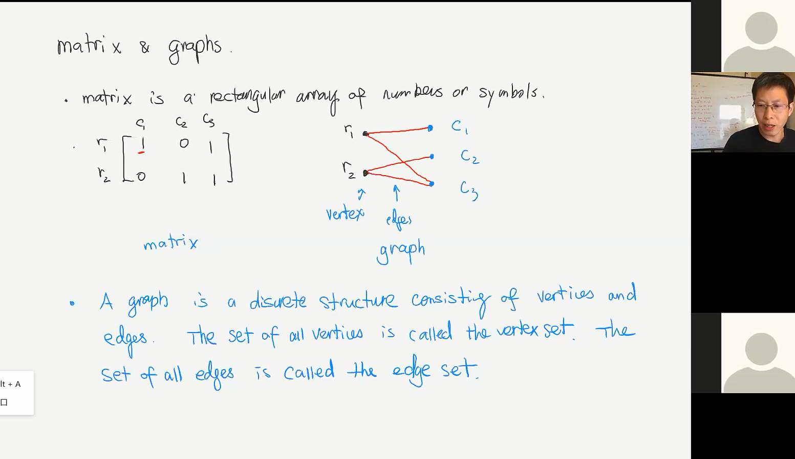 课程于7月6日晚上19时准时开始,beat365中国唯一官网亓兴勤教授作为课程负责人首先对参加课程的同学和学者表示欢迎,然后介绍了叶东副教授的基本情况及在科研领域的贡献。beat365中国唯一官网数学学院副院长王光辉教授对叶东副教授的授课表示欢迎及感谢,并希望学员有所收获、快乐度过一周的学习时间。本课程共16学时。在此期间叶东教授全程英文讲授了离散数学核心内容及前沿课题,从图谱理论到正则定理,再到他们的具体应用。叶东教授语言流利、发音标准,讲课思路清晰、深入浅出、十分透彻。通过学习离散数学课程,同学们均表示受益匪浅,不仅掌握了离散数学的核心内容,更激发了对图理论及其应用的兴趣,在心中种下了科研的种子,还开阔了视野,提高了英语能力,体验到了学者的风采和数学的真谛。