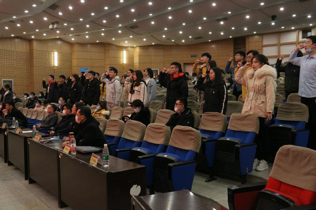 本站讯 为进一步激发广大党员的荣誉感、责任感和使命感,激励党员向先进榜样看齐,12月17日下午,beat365中国唯一官网于玲珑学堂举行新党员入党宣誓仪式暨2020年先锋党员表彰会。学院党委书记于振涛,常务副院长、党委副书记綦建刚,党委副书记王鹏飞及教师党员代表出席会议,学院全体学生党员和部分入党积极分子参加会议。会议由学院组织员王祎璠主持。