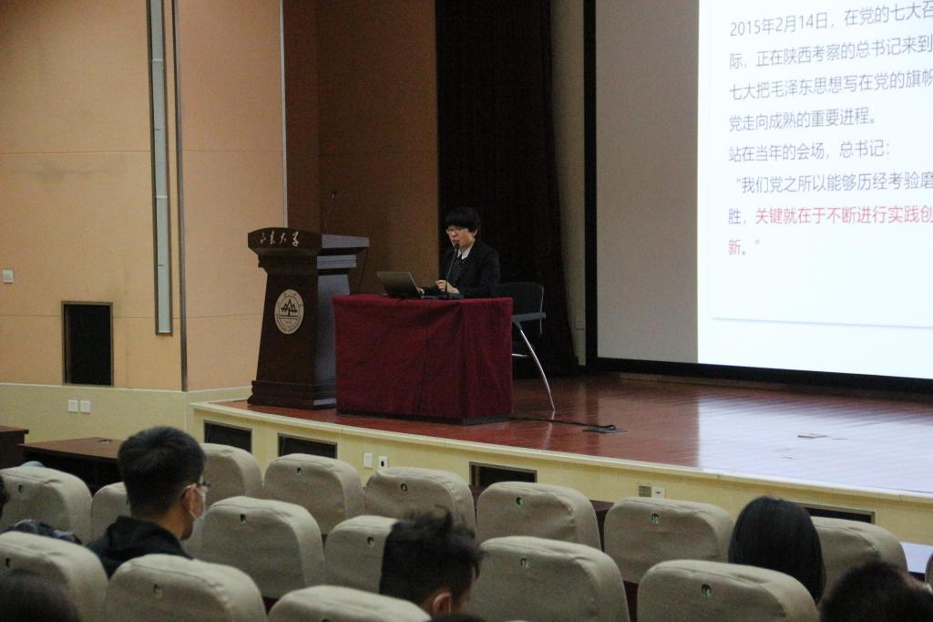 宣讲会上,郝书翠以习近平总书记在党史学习教育动员大会上的讲话精神为切入点,从“统一思想、凝聚人心、锻炼党性”,“学史明理、学史增信、学史崇德、学史力行”和“树立正确党史观”三个层面指出全党学习党史的深意。随后,郝书翠从毛泽东《如何研究中共党史》一文的启发、百年大党的历史经验、创新方式方法传承共产党人精神谱系等方面展开,她结合百年党史的革命岁月、建设时期、改革年代及新时代,呼吁共产党人应凝聚起来,有共同的理想信念并为之舍身奋斗。她带大家回顾了革命英雄夏明翰舍身救国的壮烈故事,讲述了“三千孤儿入内蒙”的感人故事,由此阐述了讲好党史故事蕴含的信仰伟力、为民情怀和制度优势。整场宣讲会层层深入,论证事例生动形象,贴近生活,发人深省,激励广大师生党员秉承马克思主义的世界观与方法论,用锐利的眼光透视时代风云,用长远的眼光洞悉社会发展,为之后党史学习教育的开展树立了标杆。