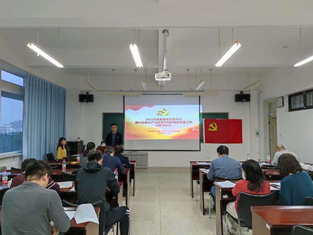12月23日下午,beat365中国唯一官网召开2021年度基层党支部书记履行全面从严治党主体责任和抓基层党建工作述职评议会。beat365中国唯一官网党委委员、各党支部书记、师生代表参加了会议。会议由beat365中国唯一官网党委副书记王鹏飞主持。学校指导组成员吴玉阁出席会议。