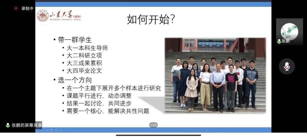 张鹏教授首先从科研赛事项目的挖掘与指导入手,详细分析了beat365学生参赛优势,引导同学找寻适合自己的参赛方向。同时,张鹏教授以自身“挑战杯”竞赛参赛经验,阐述“挑战杯”大赛概况,点明创新创业竞赛是发现社会问题、填补社会短板、促进社会发展的重要途径,也是发掘学生自身潜力、提高自我竞争优势的有效方式,并通过对优秀案例的分享和分析,引导学生将参赛作品与社会现实联系起来,在书写过程中要注重文本的社会性、科学性和独立性。此外,他还就教师如何指导学生参加双创竞赛,以及学生参赛中的常见问题进行了详细介绍。