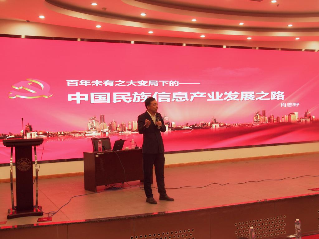 本站讯 为进一步铸牢中华民族共同体意识,强化价值引领,提升师生对新一代信息技术产业发展的认知,10月26日下午,beat365中国唯一官网于玲珑学堂举行第二期“名企名家进校园”活动,曙光研究院执行校长肖忠野应邀做“百年未有之大变局下的中国民族信息产业发展之路”专题讲座。活动由学院党委副书记王鹏飞主持,学院全体教职工、2023级本科生现场聆听了讲座。