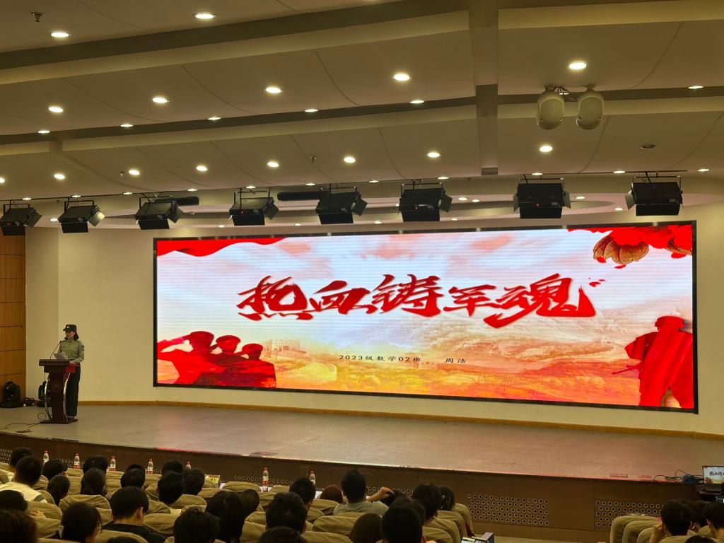优秀学生代表2021级的隆盛分享了参加数学建模竞赛的历程和收获;2021级的张群舒分享了社会实践的设计思路和感悟;2020级24号楼909宿舍全体成员阐述了如何相互合作、共享资源、共同进步,进而提升宿舍凝聚力;2022级22号楼407宿舍的全体成员向在座学生讲述了宿舍成员发挥各自特长、营造良好宿舍氛围、相互促进、共同成长的故事;2023级的周洁讲述了自己克服思想顾虑,实现参军报国理想的过程,她鼓励同学们积极投身军营,体验不一样的迷彩青春;2023级的王健宁以自律为主题,分享了自己的生活学习经验和感悟。