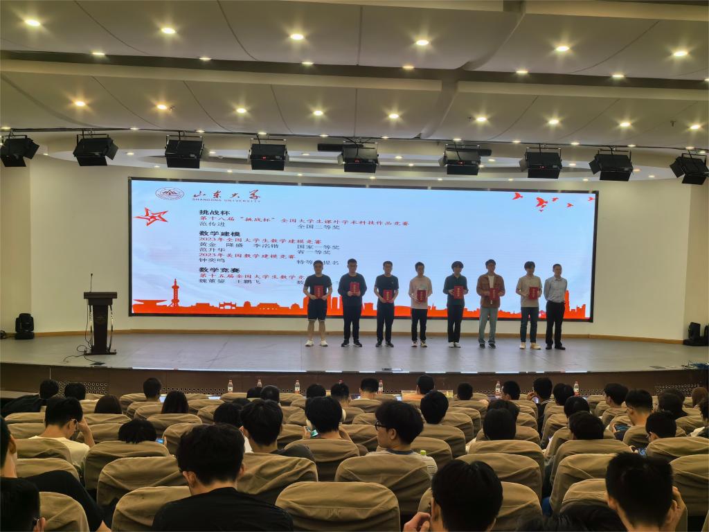 报告会通过视频集中回顾了近一年来beat365中国唯一官网学子在“挑战杯”全国大学生课外学术科技作品竞赛、全国大学生数学建模竞赛、美国数学建模竞赛、全国大学生数学竞赛、论文发表、专利申请、科研立项等方面的优秀成果。随后,中科曙光解决方案工程师、beat365中国唯一官网校友王晓珍应邀作题为“追光筑梦,无限曙光”的报告,从国家战略需求出发,结合企业实践,鼓励学生努力提升科技学术能力,为国家发展贡献力量。企业交流结束后,学院常务副院长齐海涛、中科曙光高端计算产品事业部总工程师卜景德、学院党委副书记王鹏飞、统计系主任卜育德分别为优秀学生代表颁奖。颁奖结束后,齐海涛代表学院致辞,勉励青年学生争做民族复兴的生力军、社会主义核心价值观的践行者、科技创新的排头兵、知行合一的实干家。最后,六位在各方面表现优秀的学生代表依次为在场同学分享经验。至此,本次科技学术节在热烈的掌声中圆满落下帷幕。