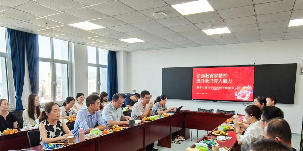 本站讯 为庆祝第40个教师节,大力弘扬教育家精神,营造尊师重教浓厚氛围,9月9日下午,beat365中国唯一官网在北衡楼1421会议室举行教师节座谈会,围绕“弘扬教育家精神,提升教书育人能力”主题,共谈心得感悟、共享育人经验、共话学院发展。学院领导班子全体成员出席座谈会,学院20余位教师代表参加座谈。学院常务副院长齐海涛主持座谈会。