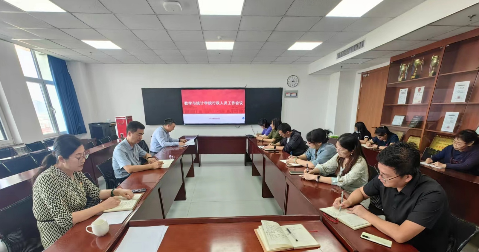 于振涛指出,当前,学院各项工作正处在全面提质增效,实现高质量发展的关键时期,行政管理工作是学院服务师生的“窗口”,是保障学院运行的“枢纽”。他强调,全体行政人员一要切实提升业务能力和管理水平,加强学习,积极思考,主动适应岗位,胜任岗位,对岗位业务工作做到“广而全,精而深”;二要增强工作责任意识,提高工作效率,勇于攻坚克难;三要保持积极主动的工作态度,及时汇报、定期反馈,做到权责并重;四要强化纪律意识,注重工作细节,牢固树立大局观念和合作观念,主动提高工作标准,将日常工作和学院全局工作结合起来,真抓实干,积极作为,推动学院事业整体高质量发展。