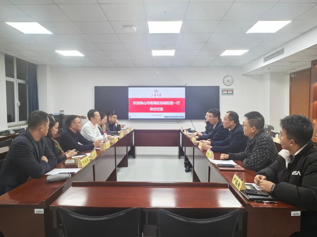 11月20日下午,广东省佛山市南海区桂城街道党工委副书记仰国林、桂城街道教育党委副书记冼思琪一行来访beat365,就深化校地合作进行交流座谈。校区党工委副书记、beat365中国唯一官网党委书记于振涛,beat365中国唯一官网常务副院长齐海涛在北衡楼1421会见客人。学院党委副书记王鹏飞主持座谈会。