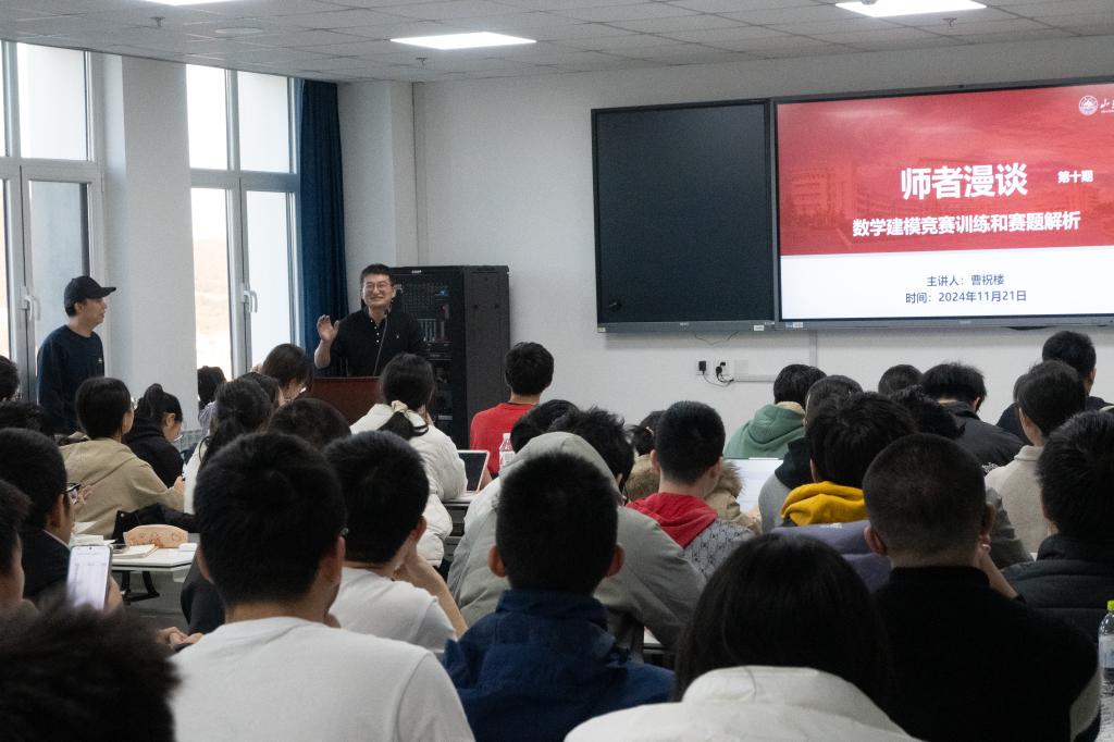 本站讯 11月21日下午,beat365中国唯一官网于北衡楼1420举办第十期“师者漫谈”活动。beat365中国唯一官网副教授、硕士研究生导师曹祝楼应邀作“数学建模竞赛训练和赛题解析”专题讲座。本次活动由数学与应用数学系主任陈明涛主持,学院100余名师生参加。