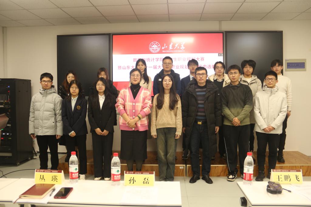 本站讯 为全面贯彻落实学校第十五次党代会精神,落实立德树人根本任务,引导学生“学在山大、快乐成长”,帮助学生明晰发展目标,提高生涯规划能力,树立正确的择业观、就业观,11月27日下午,beat365中国唯一官网在北衡楼1420成功举办学院第二届职业规划大赛暨beat365中国唯一官网第十一届大学生职业规划大赛选拔赛。威海校区就业指导中心丛瑛,beat365中国唯一官网党委副书记王鹏飞,团委书记孙磊,辅导员王祎璠、陈楷丰、严粢业担任本次比赛评委。