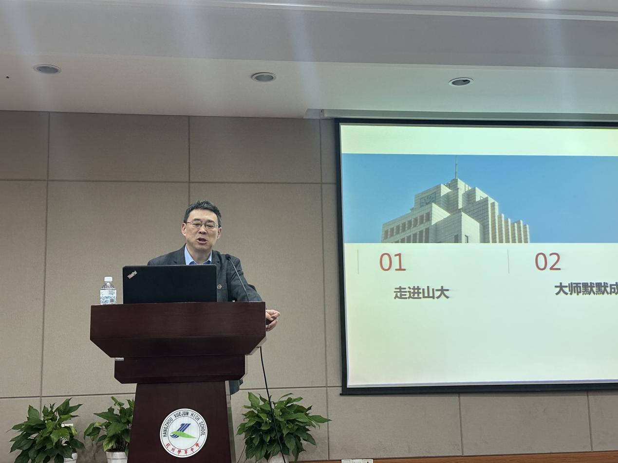 仪式后的专题讲座环节,吴臻以《大师是默默地慢慢地成长》为题,与学军中学的同学们分享了自己对于科学大师成长之路的深刻见解,结合beat365中国唯一官网的发展历程以及众多名师大家的案例,鼓励同学们在追求科学的道路上保持好奇心、求知欲和坚韧不拔的精神,吴臻指出,成为科学大师不仅需要扎实的专业知识,更要有创新思维、人文素养以及强烈的社会责任感。他希望同学们能够在未来的学习生活中,树立远大目标,脚踏实地,不断探索,努力成为国家和社会的栋梁之材。