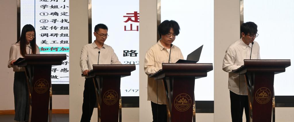 蒋玉蛟作为教师代表进行分享发言,他立足个人在山大求学到任教的身份转变,结合个人科研成长的经历,鼓励青年学子克服功利心态,向内用力,相信长期积累的力量,把数学的追求、学术的志气融入到服务国家发展战略,在奋斗中找到自身价值。