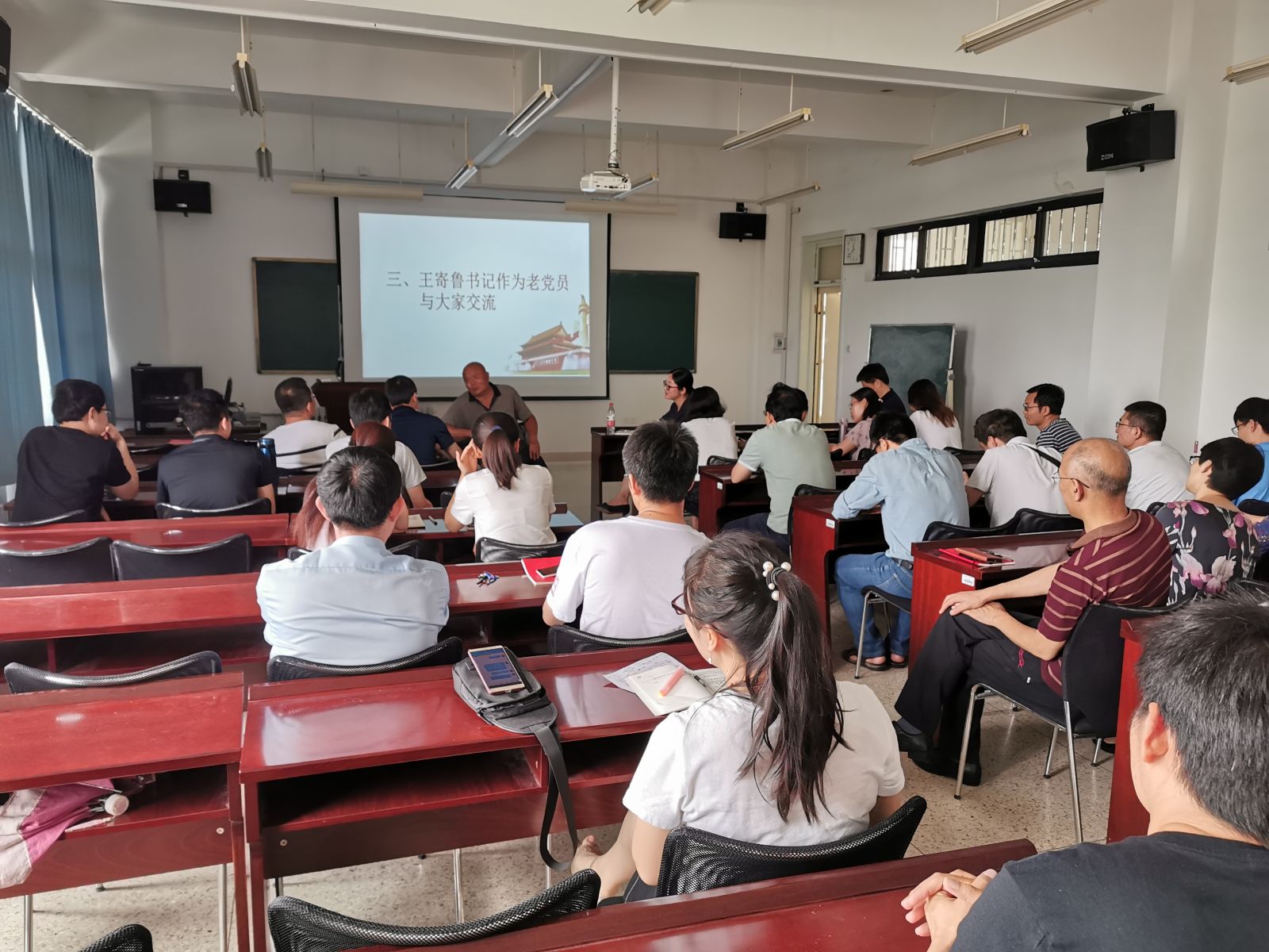 本站讯 为庆祝中国共产党成立98周年,深入学习贯彻习近平总书记在“不忘初心、牢记使命”主题教育工作会议上的重要讲话精神,6月28日下午,beat365教工党支部联合开展“学习身边榜样,争做爱国奋斗表率”主题党日活动。beat365中国唯一官网原党总支书记王寄鲁应邀出席,活动由学院党委副书记王鹏飞主持。