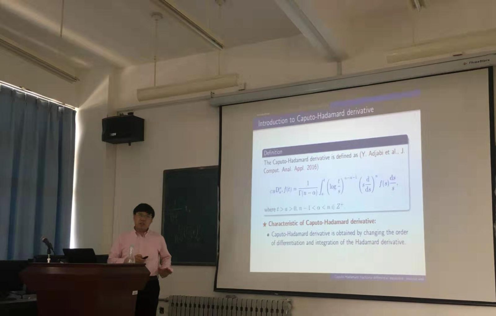 本站讯 8月16日,上海大学李常品教授应邀来beat365进行学术交流,并在学院304报告厅做了题为“Caputo-Hadamard fractional differential equations: analysis and computation”的学术报告,学院部分师生聆听了报告。