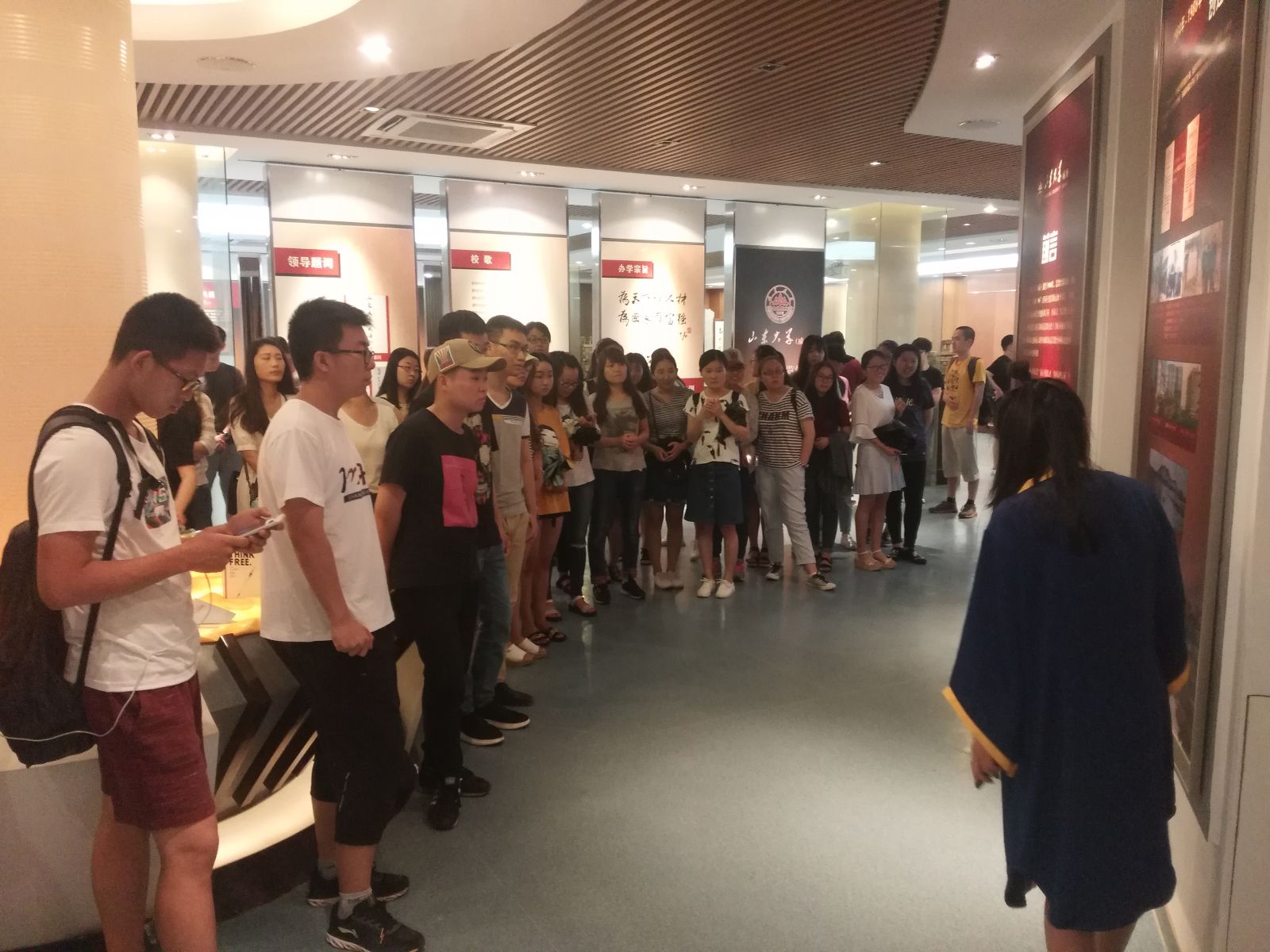 活动伊始,学校蓝袍大使首先带领同学们参观了形象墙,同时讲解了校徽的构成意义,介绍了校训、办学宗旨、校歌以及校友之歌。校史展览馆分7个板块对学校建校30年来的办学成果进行了总结和展示。从选址建校到一座座教学楼的拔地而起,从设计建造文心湖到校门变迁。除了文字介绍和300余幅图片展示外,还增加了投影、触摸屏、实物展柜等多种展示手段。毕业生党员们参观了校史馆的实物展柜中所展出的部分重要的历史文件、奖杯奖状、学校首份课程安排表、首届毕业生毕业分配表等珍贵的档案资料,以及馆内历届毕业生毕业照展示墙,一睹自1989届首届毕业生至今的700余张毕业合影。最后,beat365中国唯一官网2017届全体毕业生党员在党旗下庄严宣誓,重温入党誓词。