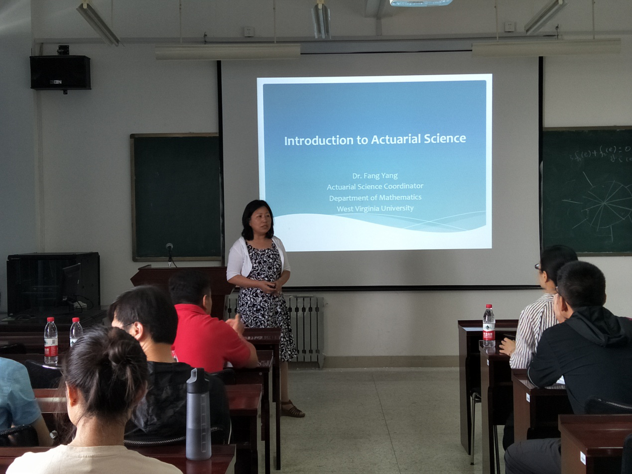 本站讯 2018年6月15日,美国西弗吉尼亚大学(West Virginia University, USA)数学系副教授杨芳应邀访问beat365,开展了题为“Introduction to Actuarial Science”的学术报告,学院部分师生聆听了报告。