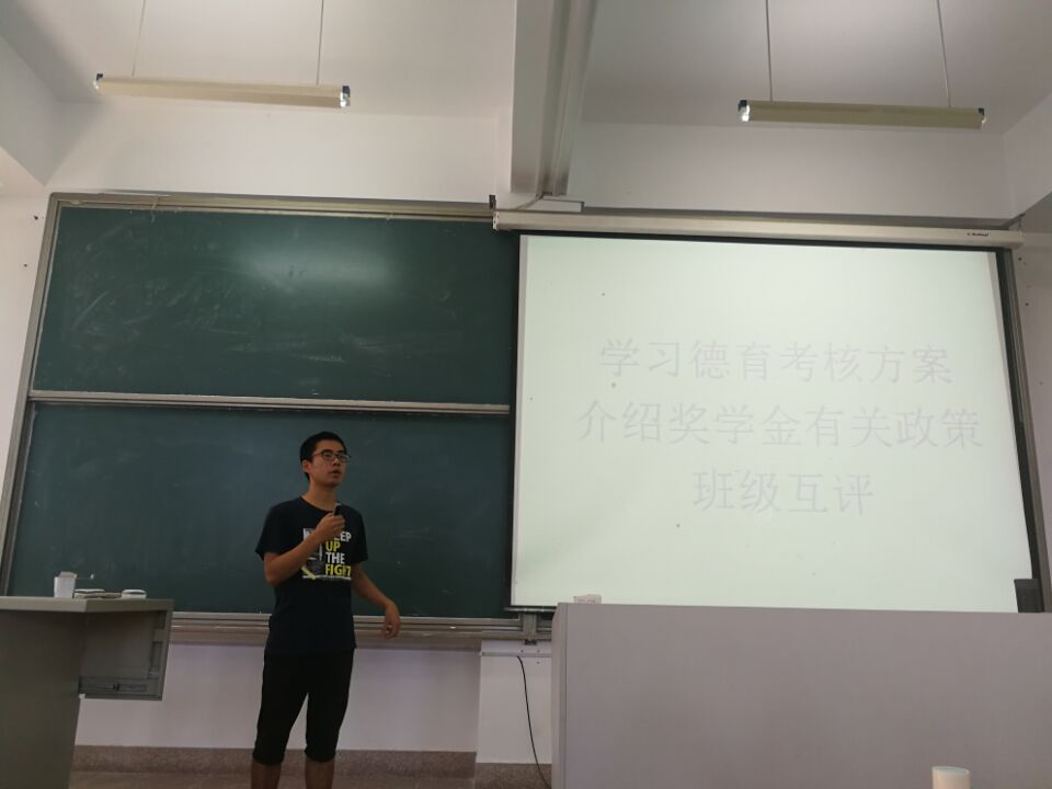 首先,班长夏炳权进行讲话,他说明,综合素质测评和德育考核对以后的奖学金评定和研究生推免等有很大影响。接着,他带领全班同学详细地学习了《beat365中国唯一官网本科生德育素质评价办法》、《beat365中国唯一官网本科生特长奖学金评定办法》两个文件,对文件中需要解释的部分做了具体的说明,对重点部分做了强调。团支书张驰同学带领同学们学习发展性素质评分表格的具体填写方式,张驰提醒同学们要在7月21日之前全部上交表格。最后,班长和团支书同学留下了全体班委、宿舍舍长和学生会干事,进行班级同学贫困认定的审核。这些同学秉持公平公正、认真仔细的态度审核了贫困同学上交的表格,并发表了自己的看法。本次班会圆满结束。