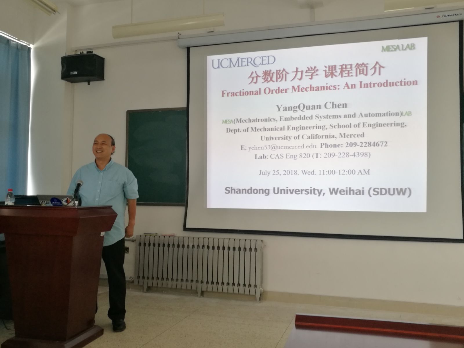 本站讯 7月25日,美国加州大学默塞德分校陈阳泉教授应邀来beat365进行学术交流,并在学院学术报告厅分别作了题为“Fractional Order Mechanics: An Introduction”学院部分师生聆听了报告。