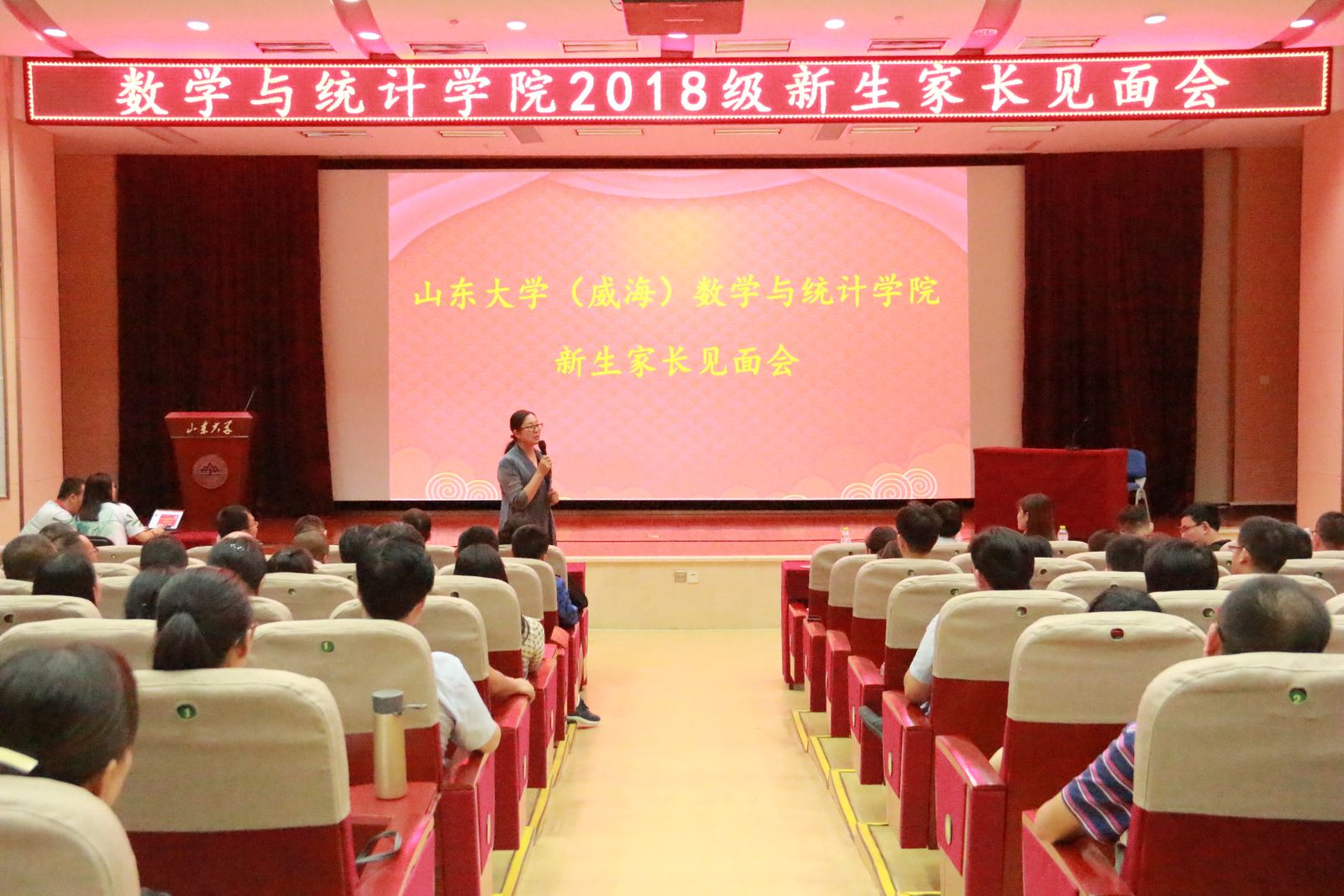 在beat365中国唯一官网(威海)宣传片、学院宣传片播放结束后,王鹏飞宣布新生家长见面会正式开始。会上,学院党委书记单丙波代表学院致辞,对新生和家长的到来表示了热烈的欢迎,对学院的师资力量、人才培养特色与成效、学院成绩等方面进行了简要介绍。单丙波指出,在beat365中国唯一官网“双一流”建设和一体化发展战略下,学院发展迎来了新的契机,学院有信心、有能力与家长通力合作、共同努力,以更好的姿态回馈家长的信任。在家长提问环节,分管教学院长和辅导员就课程设置、第二课堂培养、就业方向等问题进行了耐心解答,现场气氛热烈。新生辅导员孙磊针对学校的资助管理体系、奖学金评定办法等政策向家长进行了说明。最后,王鹏飞从自身经历出发,分享了自己关于教育的体会,同时强调了校园安全等问题,希望家长知晓理解、合作沟通,为学生的成长一同努力。