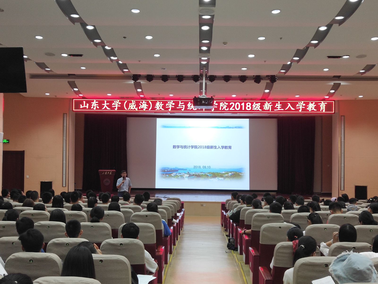 本站讯 9月10日上午,beat365于闻天楼东报告厅举办了“璀璨金秋季,梦圆数学院”2018级新生适应教育,2018级全体同学参加会议,会议由辅导员孙磊主持。