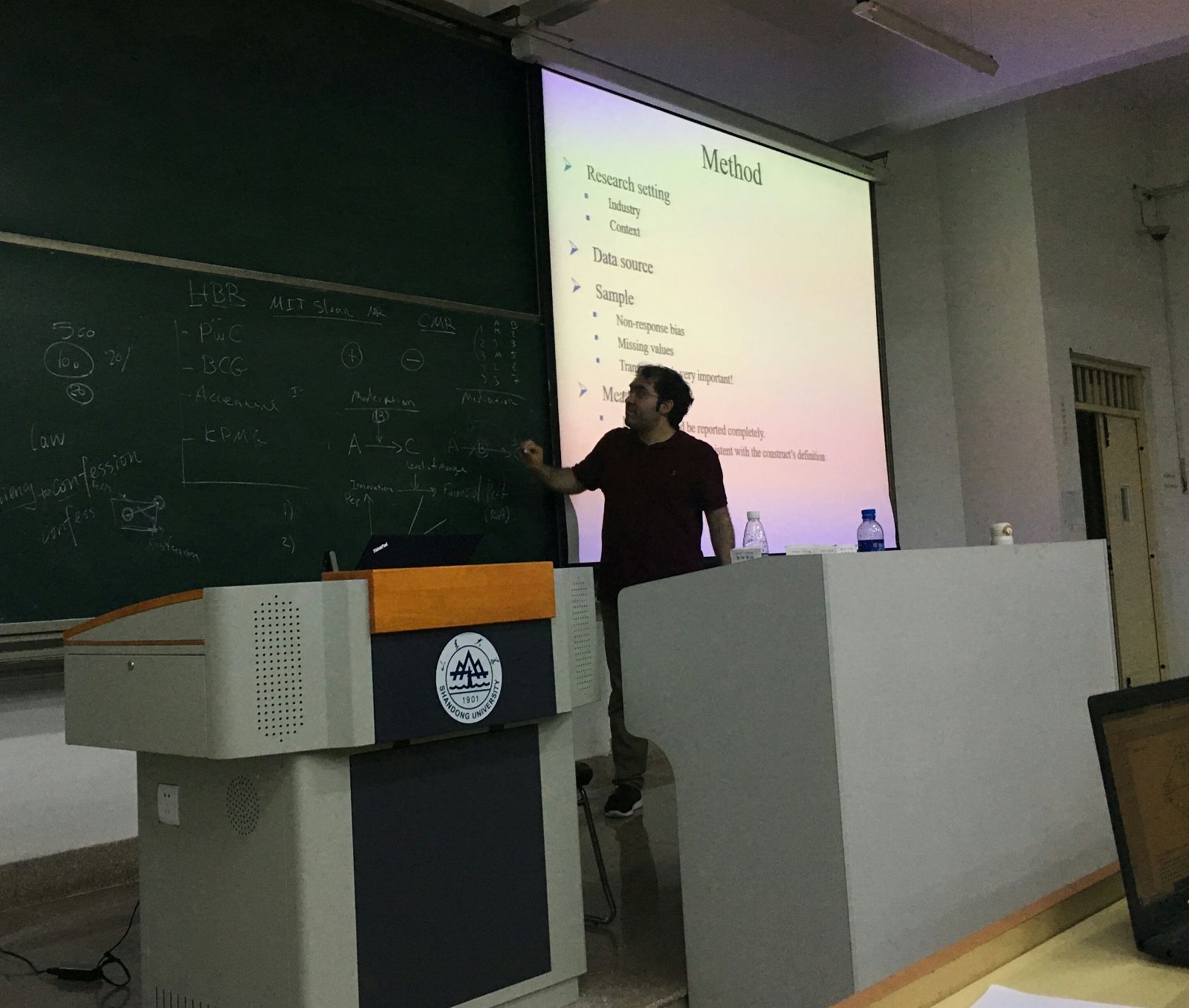 论坛开始前一周,Mehdi教授将讲座需要的一些资料通过网盘链接分享给大家,希望大家提前阅读并了解讲座背景,其中包括Stefan Markovic助理教授录制的视频讲解、Mehdi教授的初稿文章、提交文章以及相应期刊审稿的互相回复邮件、最终发表文章等资料。讲座伊始,Mehdi教授大体介绍了自己的研究领域与科研经历,随后Mehdi教授以他在期刊JOURNAL OF BUSINESS RESEARCH上发表的文章"How does breadth of external stakeholder co-creation influence innovation performance? Analyzing the mediating roles of knowledge sharing and product innovation"为例,将一篇论文合适的写作思路和框架构造进行了细致的讲解,除此之外,Mehdi教授以自己的回复评审意见为例,讲解投稿后如何应对期刊的多轮评审过程,如何按照评审意见修改论文,同时介绍了统计建模分析实例以及英文写作技巧。最后提问环节,同学们踊跃提问,Mehdi教授耐心解答了同学们提出的有关论文写作的问题,本次讲座到此结束。