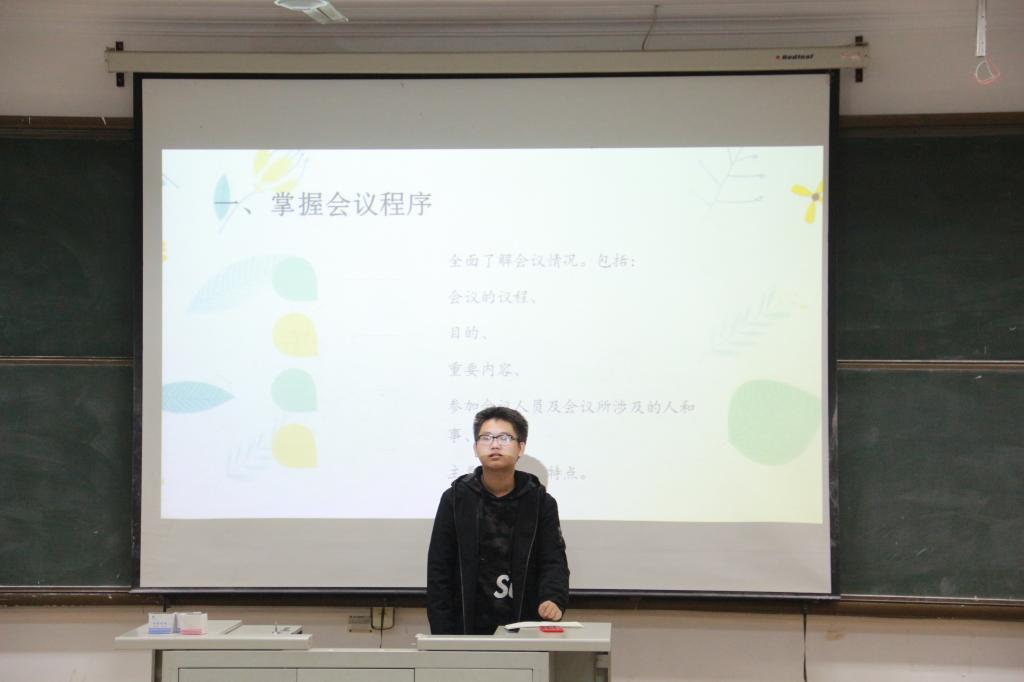 学生会副主席石天宇向大家强调了本院团组织章程及制度,要求大家能遵守规章制度,规范自身行为;副主席孔欣宇向同学们介绍了即将开展的各项学团活动并进行活动的安排部署。团委学生会部分部门部长及副部对同学们进行了相应部门的技能培训。综合事务部部长黄河源、副部崔之起、许函嘉对活动通知等文书的写作及物品借阅的流程等事项进行了培训。实践服务部部长盛靖斐讲解了发票的种类及报销流程。新媒体中心部长刘嘉宁介绍了摄影技巧、通讯写作格式及新媒体中心的制度等方面。最后,石天宇就此次会议内容进行了提问,并强调了日常礼仪的重要性。会议在掌声中落下帷幕。