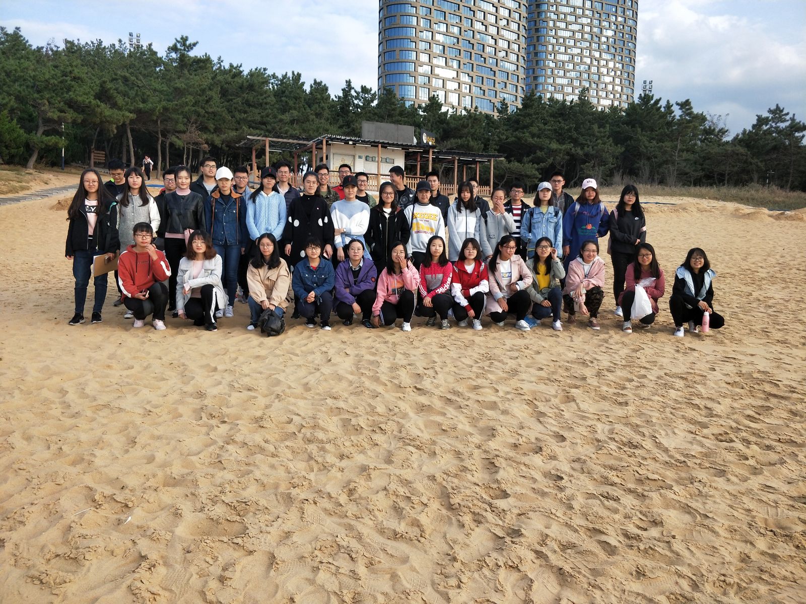 本站讯 2018年10月22日下午,2017级统计一班举行“落日金滩,志愿共行”金海湾沙滩美化活动,此次活动由班级就业委员翟雨璇组织策划,班级同学积极参与。
