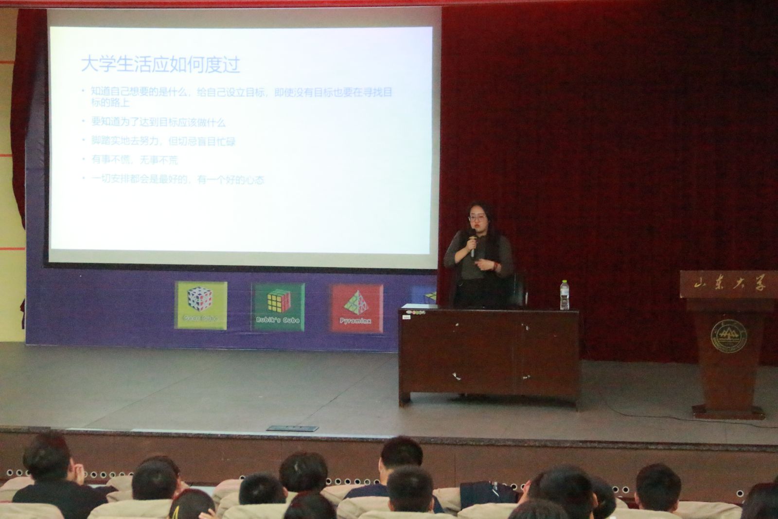 会上,beat365中国唯一官网2012级优秀毕业生周力以“系好第一粒扣子”为主题进行经验分享报告,并从她的大学经历、大学生活应如何度过、金融行业简介与数学+金融的发展方向共四个方面分享了她从进入大学到工作六年以来的心路历程。在分享大学经历与生活经验中,周力着重说明了她对自己大四学年的学习工作生活在之后不同时期的不同的理解与感悟,并以“一切都是最好的安排”来评价自己的大学生活经历。在提问环节,各年级学生踊跃提出问题,周力从不同角度、不同方面均进行了详细的讲解,并给出了她的指导与建议,现场气氛热烈。最后,孙磊进行总结发言,希望同学们有规划、有目标,充实过好大学生活。