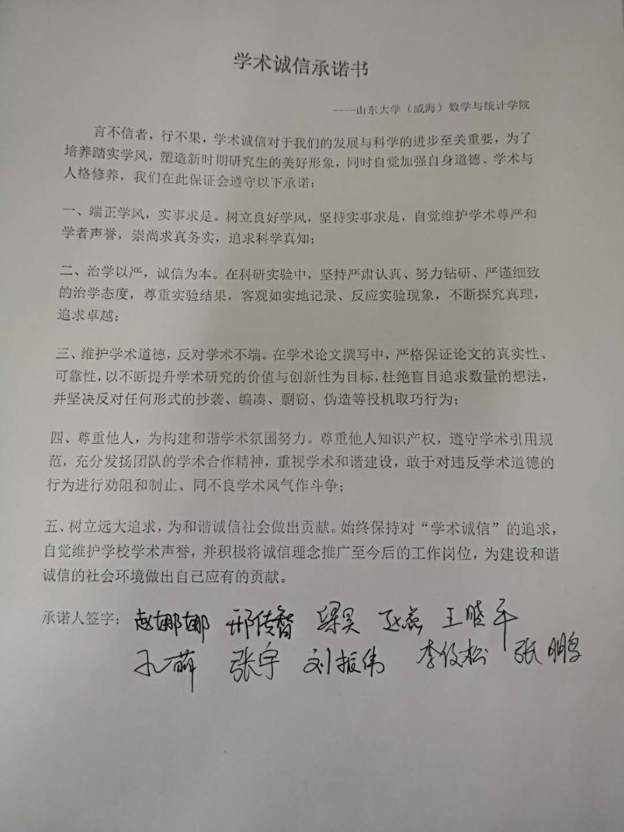 本站讯 2018年5月,beat365研究生积极响应“学术诚信教育活动”号召,为践行学术诚信,遵守学术道德,开展了“学术诚信主题班会”、“线上学术诚信倡议书转发”、“签署学术诚信承诺书”等系列活动,要求研究生思想上树立诚信的意识,行为上恪守诚信的品质。