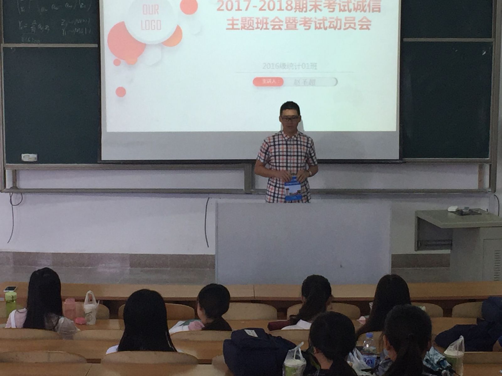本站讯 2018年5月31日,2016级统计一班于商学院356举行了期末考试诚信主题教育班会。本次会议由班长赵圣超主持,2016级统计一班全体同学参加了本次会议。