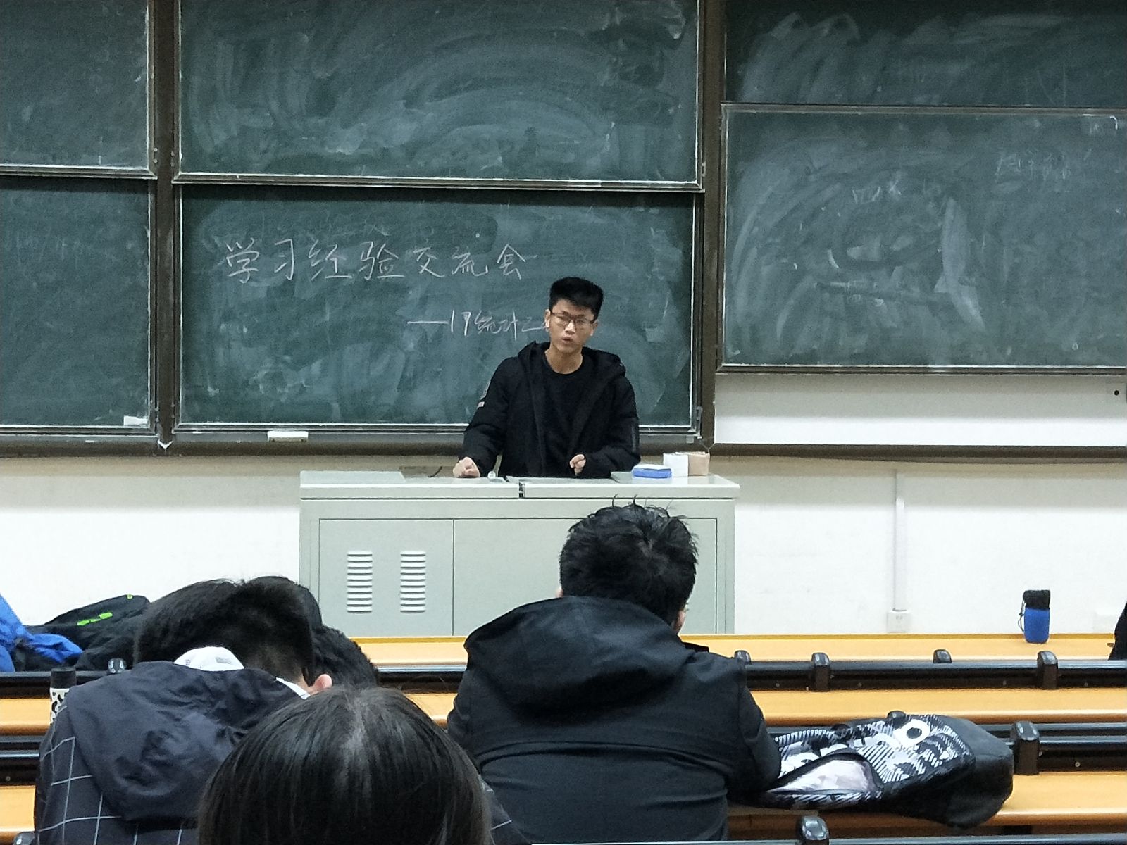 本站讯 2018年4月10日晚,2017级统计二班于图东教学楼219举办了学习经验交流会,活动由学习委员肖梦琪主持,由在上学期期末考试和四级中取得优异成绩的林钰莹、杨舟凡、王应时翔和叶扬主讲,统计二班全体同学参加了本次交流会。