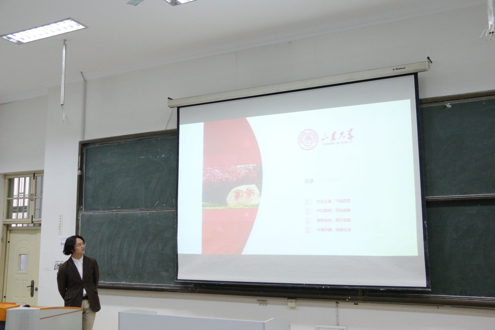 答辩会上,首先进行的是“十佳”大学生答辩,李妙然、王鑫、葛立三位候选人分别对自己大学以来的优秀成绩、科研成果和丰富经历进行陈述展示,在座的同学们反响热烈,纷纷赞叹不已。随后的“百优”大学生答辩环节,韩秋晨、王琳琳、曹继中、张曼芮、孟泽、葛超六位同学各展风采,在演讲中介绍了学习、科研、社会实践等方面所取得的成绩,赢得台下观众的阵阵掌声。参加“百优”大学生答辩的王雪蓉与邹吉奥正在台湾交流学习,他们发来的答辩视频同样精彩纷呈。最后,单丙波对本次答辩会进行了总结,表达了对所有参加答辩的同学的肯定,并表露了对数院学子的殷切期望。