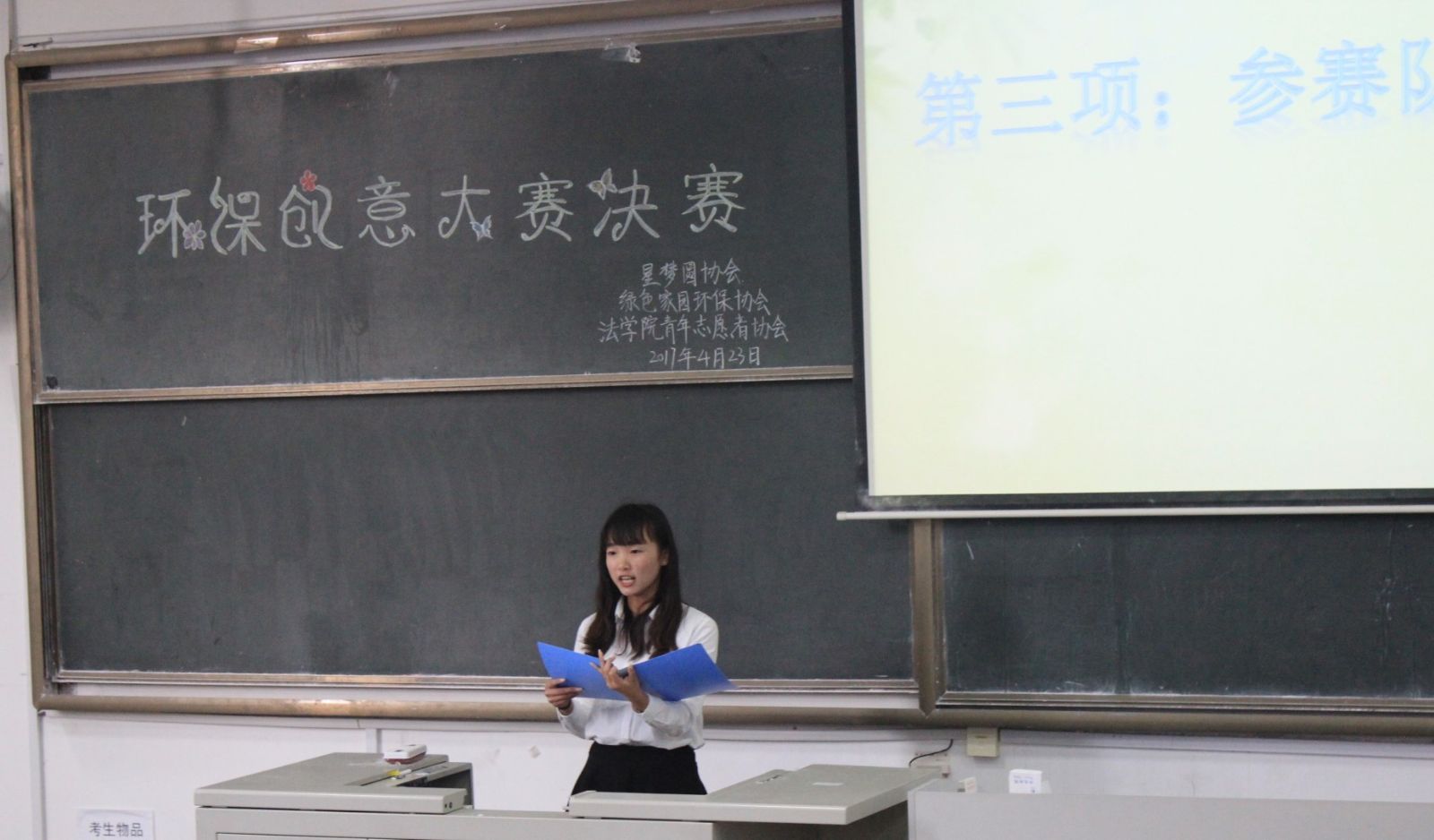 本站讯 4月23日16:30-18:00,beat365中国唯一官网星梦圆协会、法学院青年志愿者协会和绿色家园环保协会于图西126共同举办以“变废为宝我创新,节能环保我公益”为主题的第二届环保创意大赛。七位特邀评委、进入决赛的参赛选手以及各协会理事团共同参与了本次比赛的决赛环节。活动由星梦圆协会的干事张敏主持。