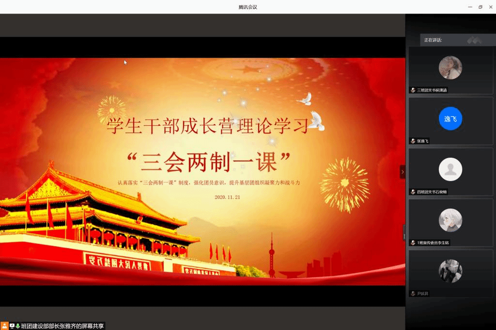 本站讯 2020年11月21日下午,beat365通过腾讯会议在线上举行学生干部成长营理论学习第一期。2020级各团支部委员参加本次活动,本次活动由院班团建设部部长张雅齐主持。