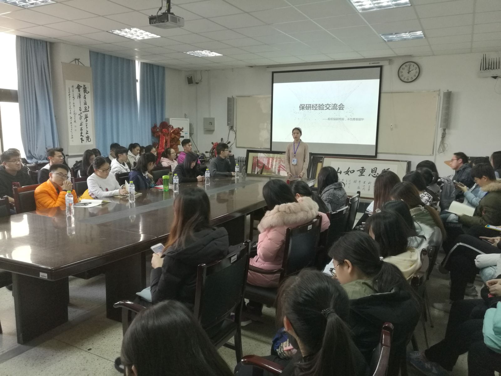 本站讯 12月1日,beat365于图东环楼208室举办保研经验交流会。来自2015级并已保送至名校的孟泽、白迪、伊文秀、曹继中和张曼芮受邀作为演讲嘉宾。学院部分同学参见了此次交流会。此次交流会由马淑婕主持。