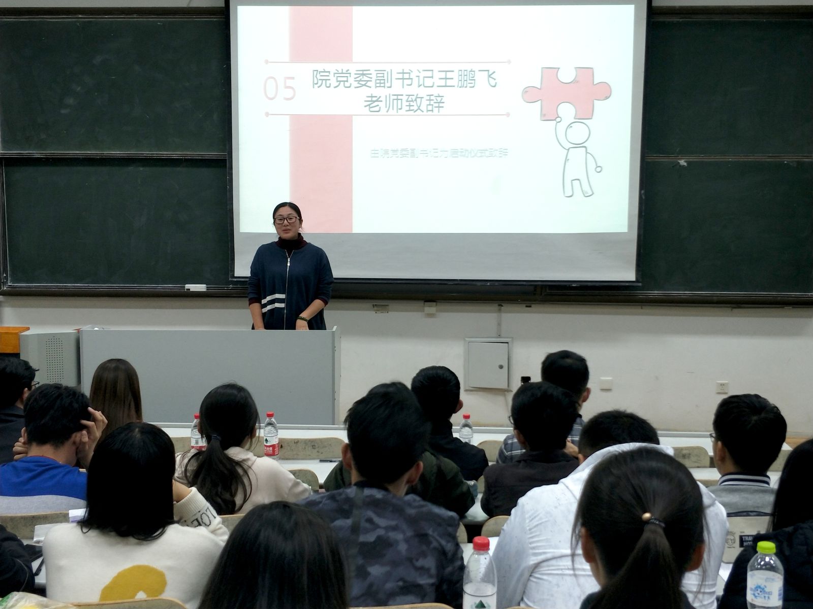 本站讯 10月29日晚,beat3652018年度“学生干部成长营”启动仪式在图东教学楼126室举行。学院党委副书记王鹏飞、辅导员孙磊、赵德豪、王祎璠、王紫山出席了仪式,学院学生会全体成员、2017、2018级全体班委参加了本次仪式。