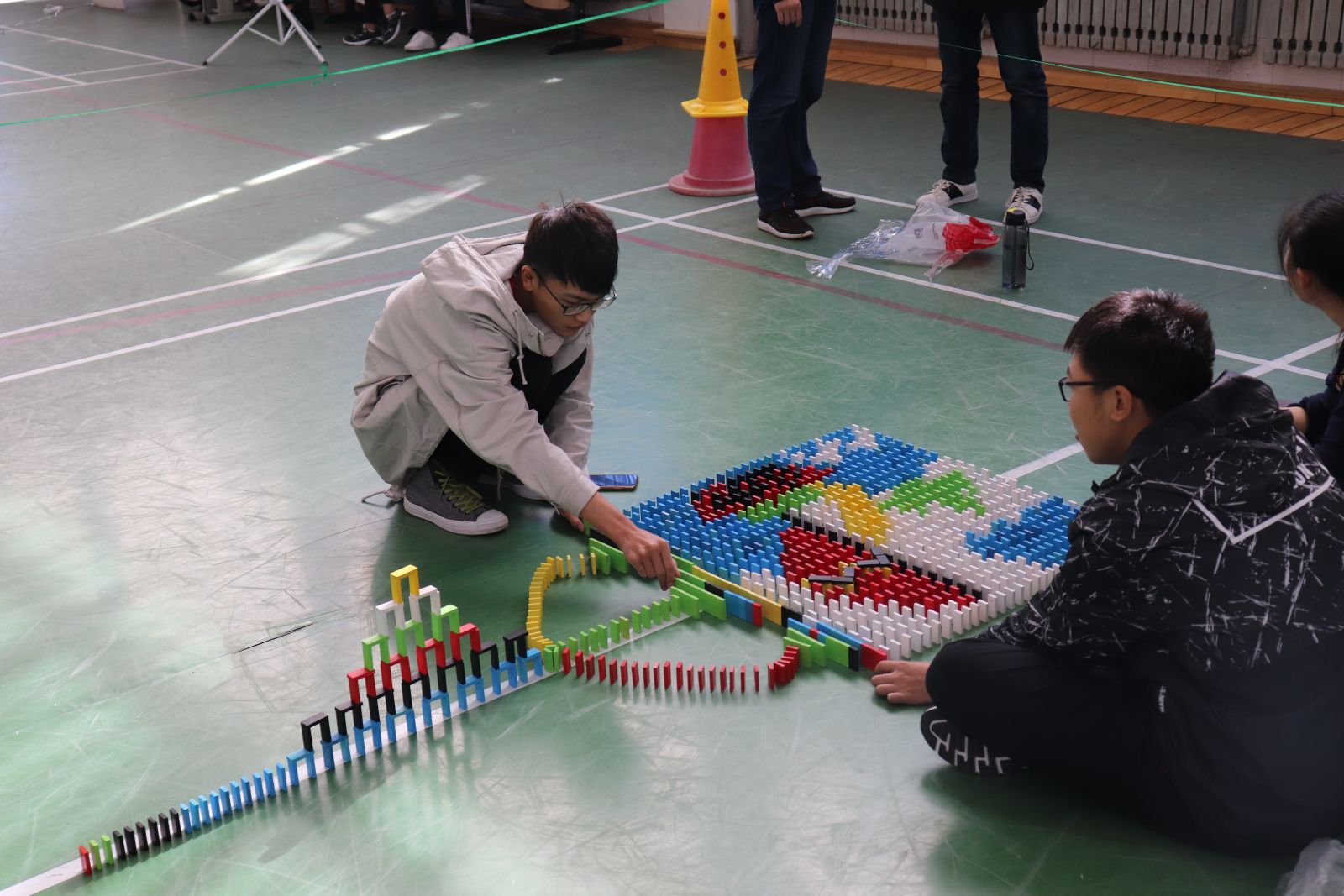 比赛伊始,董珂宣读了比赛注意事项并宣布比赛正式开始。各个队伍的队长轮流进行了对各自队伍队名的解说,并简短介绍了各自的作品。比赛正式开始,摆放时间为90分钟。现场气氛紧张而不失活泼,期间还有多米诺骨牌相关知识的介绍,荧屏上还播放着国内外优秀多米诺骨牌作品视频。骨牌摆放环节结束,则进入骨牌推倒环节。各队先对各自摆放的图形进行寓意解说,在主持人的口令下推倒。最后共评选出一等奖月亮警察拯救你队,二等奖五维空间、男神说的都队,三等奖嘚嘚嘚嘚嘚嘚嘚嘚pia倒了队、无锋队,以及最高人气奖陶泥猴子队。奖品和奖状由科技学术部副部长庄崴为获胜队伍颁发。