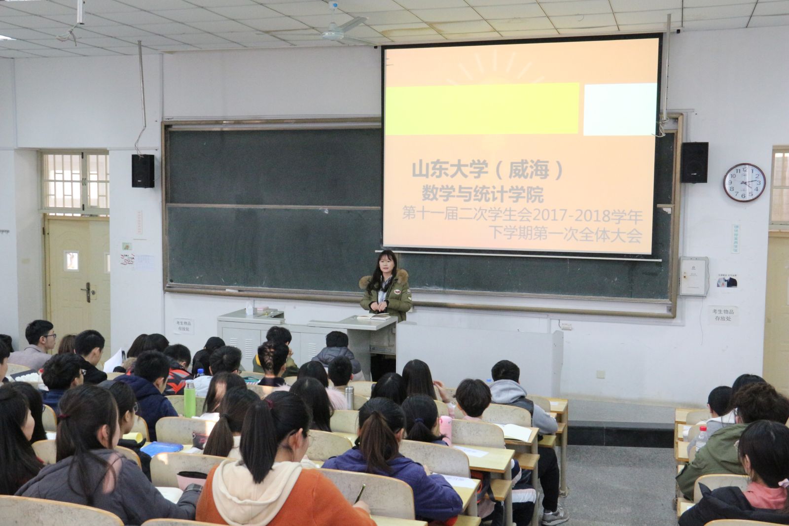 本站讯 3月15日下午4时,beat365于图西教学楼126室召开学生会2017-2018学年第二学期第一次全体大会。全体学生会成员出席了此次会议,会议由学生会主席曾伊樊主持。