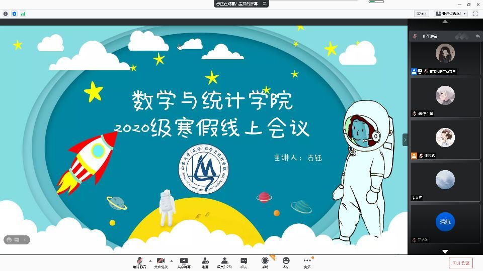 本站讯 为使新生合理、高效、安全地安排假期生活,贯彻学校“离校不离心,离校不关怀”的方针。 1月22日下午3时,beat365中国唯一官网2020全体学生于线上举行了第一次寒假班会。本次班会由辅导员古钰老师主持,beat365中国唯一官网2020级全体学生参与。